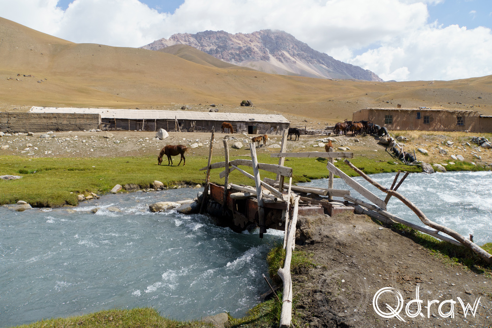 Een Indiër genaamd Jacob, die in Kenia woont, sprak opvallend goed Russisch. Verder zat er een Italiaan in de bus, die al twee jaar onafgebroken aan het reizen was en in China was geweest. Hij had plannen om via Tadzjikistan naar de Pamir Highway te gaan, hoewel hij al had gehoord dat het eten daar niet geweldig zou zijn. Ook waren er twee Israëli’s aan boord, ze logen eerst waar ze vandaan kwamen. Dat zegt ook al genoeg denk ik. Hun boeking voor een guesthouse was geannuleerd omdat ze uit Israël kwamen. De een woonde in Jeruzalem, de ander dicht bij de grens met Libanon. Tot slot sprak ik nog een Russische reiziger uit Siberië, die een beetje Engels sprak en vertelde over de subtiele taalverschillen tussen Kirgizië en Oezbekistan. Hij woonde in een regio met rotsachtige bergen, maar niet zo hoog als hier. Het was boeiend om al die verschillende verhalen onderweg te horen.