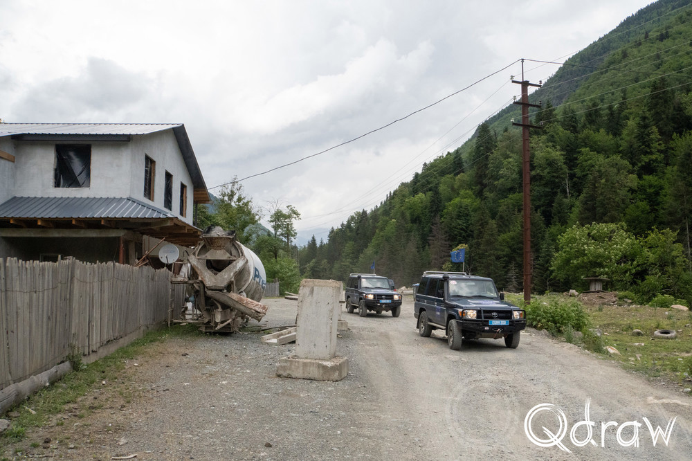 Ik zag Toyota Landcruisers van de EUMM (EU Monitoring Mission). Na de Russisch-Georgische Oorlog in augustus 2008 stuurde de EU waarnemers naar Georgië om stabiliteit te herstellen en te normaliseren na de crisis. De missie bestaat uit meer dan 200 vakspecialisten die inspecties uitvoeren in heel Georgië, inclusief Zuid-Ossetië en Abchazië. Ze zien toe op de naleving van het zes-punten-staakt-het-vuren-plan en de mensenrechten rond de conflictzones.