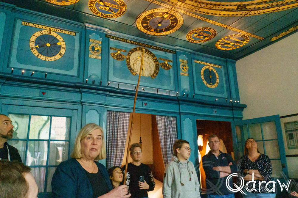 Bij binnenkomst in het museum word je meteen ondergedompeld in de wereld van Eisinga. Het planetarium zelf is het absolute hoogtepunt: in de historische woonkamer bewegen de planeten langzaam over het plafond, precies volgens hun werkelijke banen. Het is een bijzondere ervaring om te beseffen dat dit eeuwenoude mechanisme nog steeds werkt zoals Eisinga het ontworpen heeft.