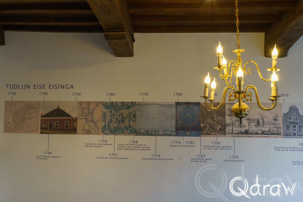 Eise Eisinga, een Friese wolkammer en autodidact in de astronomie, bouwde dit planetarium tussen 1774 en 1781 in zijn eigen woonkamer. Hij deed dit als reactie op de paniek die ontstond door een voorspelde samenstand van planeten, waarvan sommigen dachten dat deze het einde van de wereld zou betekenen. Met zijn planetarium wilde Eisinga laten zien dat deze voorspellingen onterecht waren.