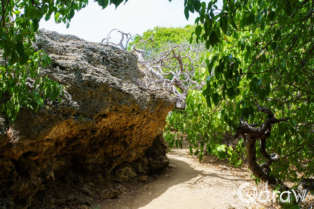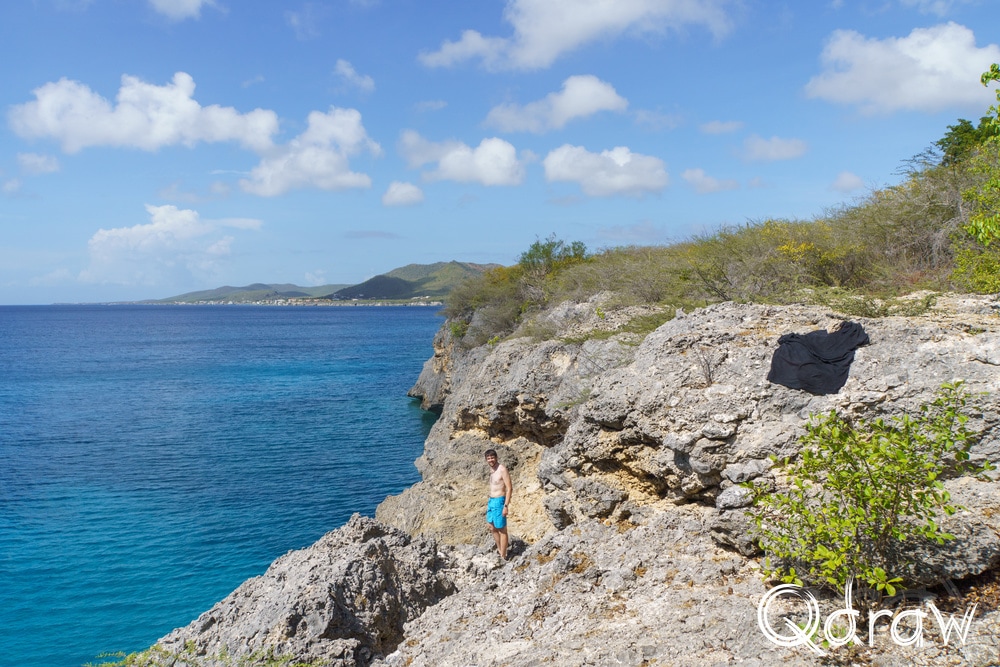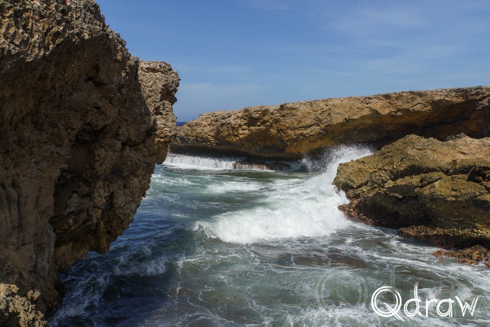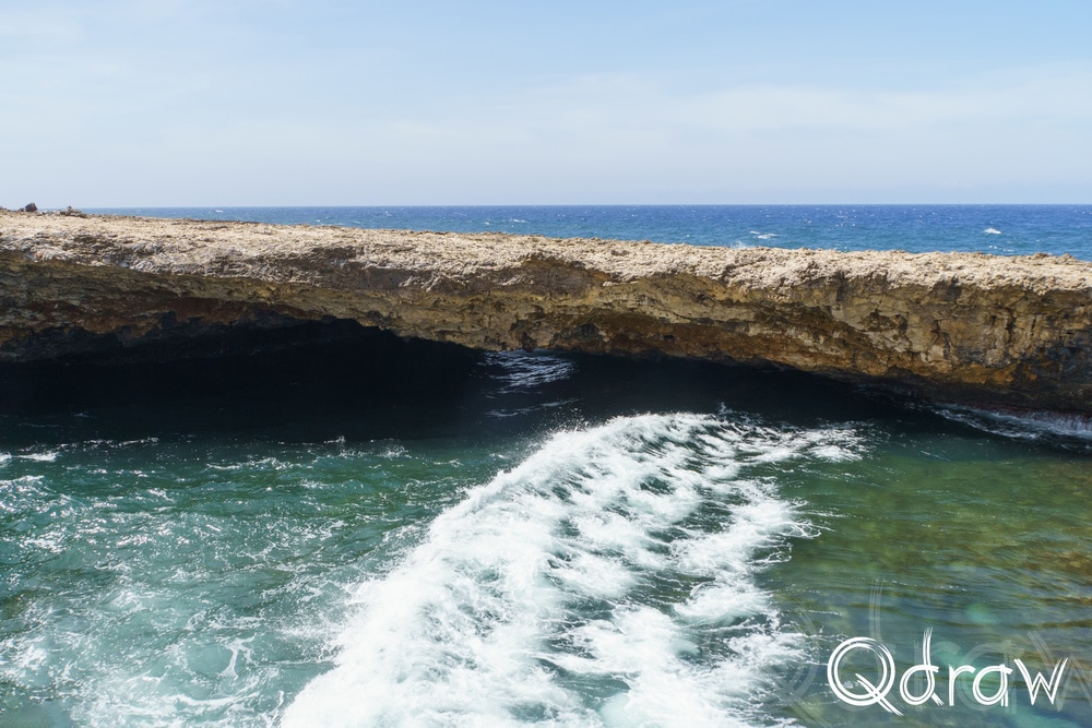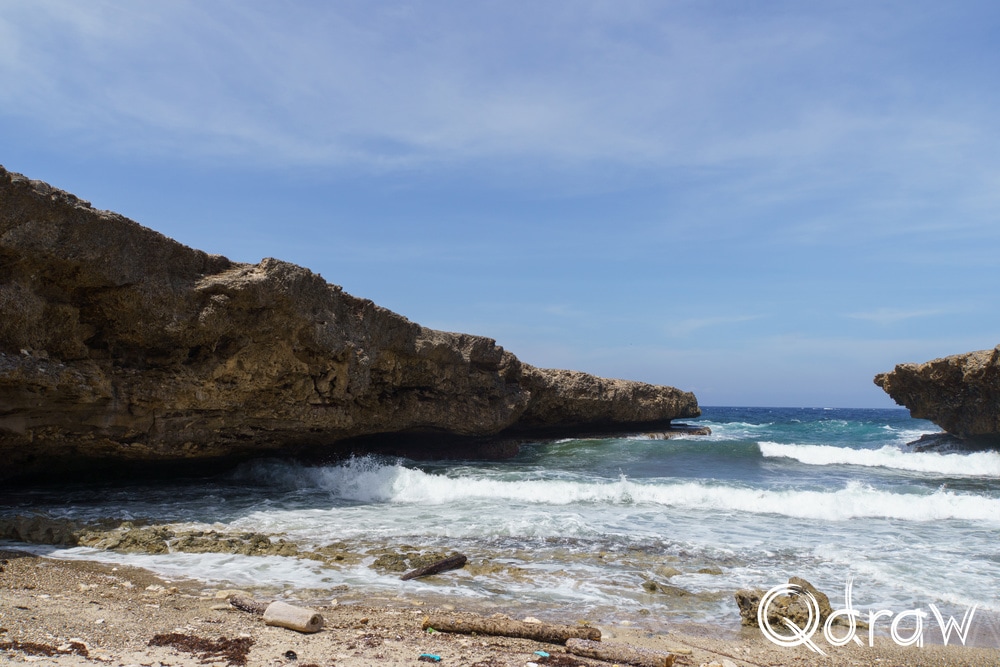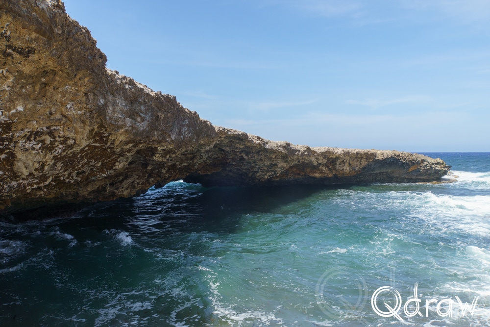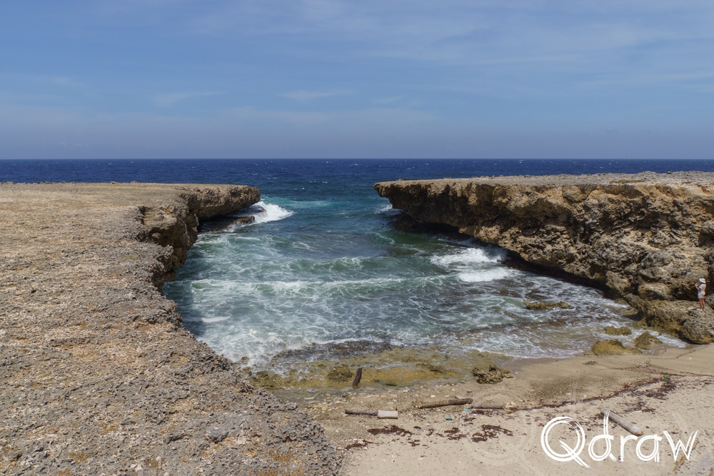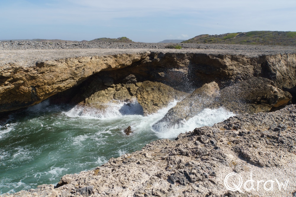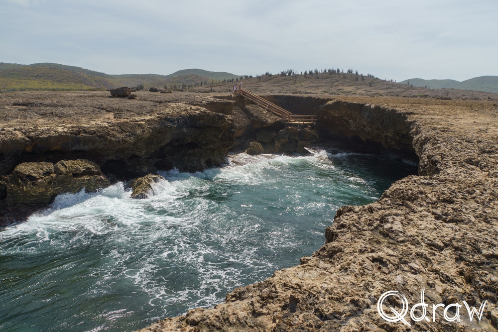 Bij Boka Wandomi werd het landschap weer wat wilder. De zee heeft hier een natuurlijke brug uitgesleten in het kalksteen en het is indrukwekkend om te zien hoe eeuwen van golven dat hebben gevormd. Toen ik bij de natuurlijke brug stond en het water onder me hoorde razen, voelde het alsof ik aan de rand van iets groots stond.