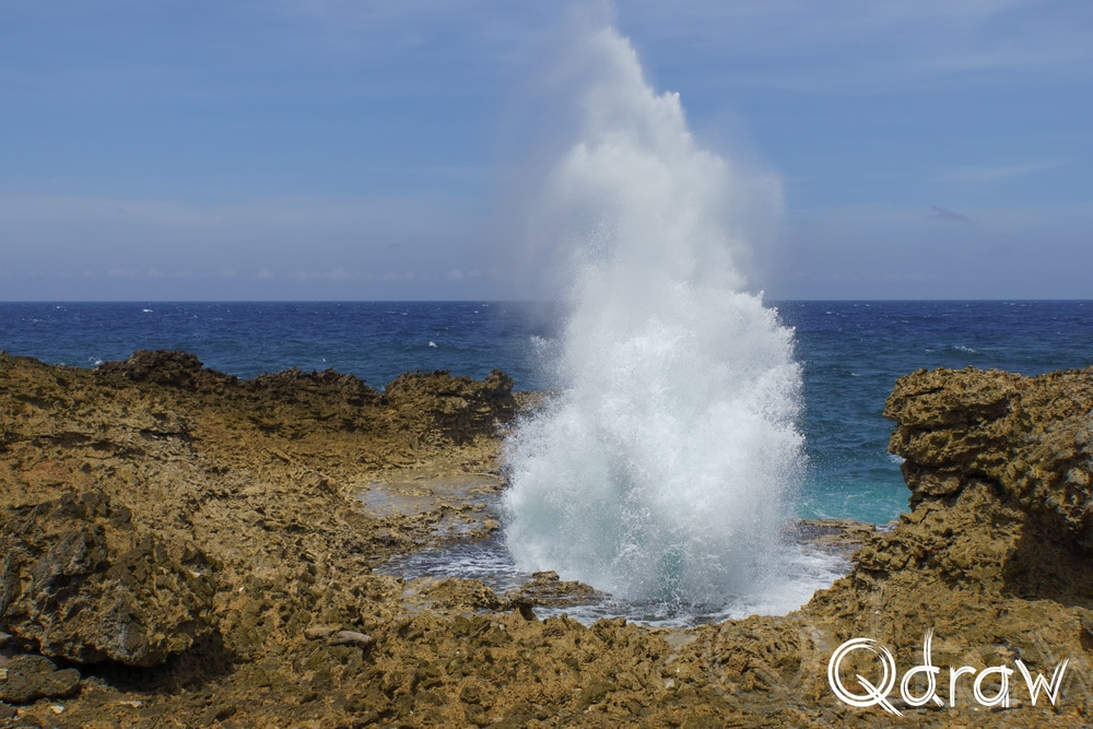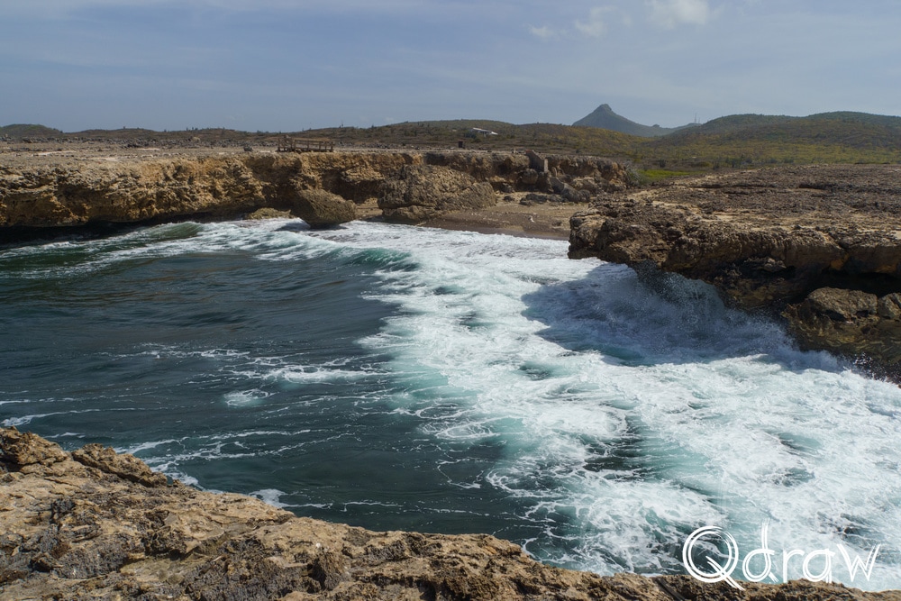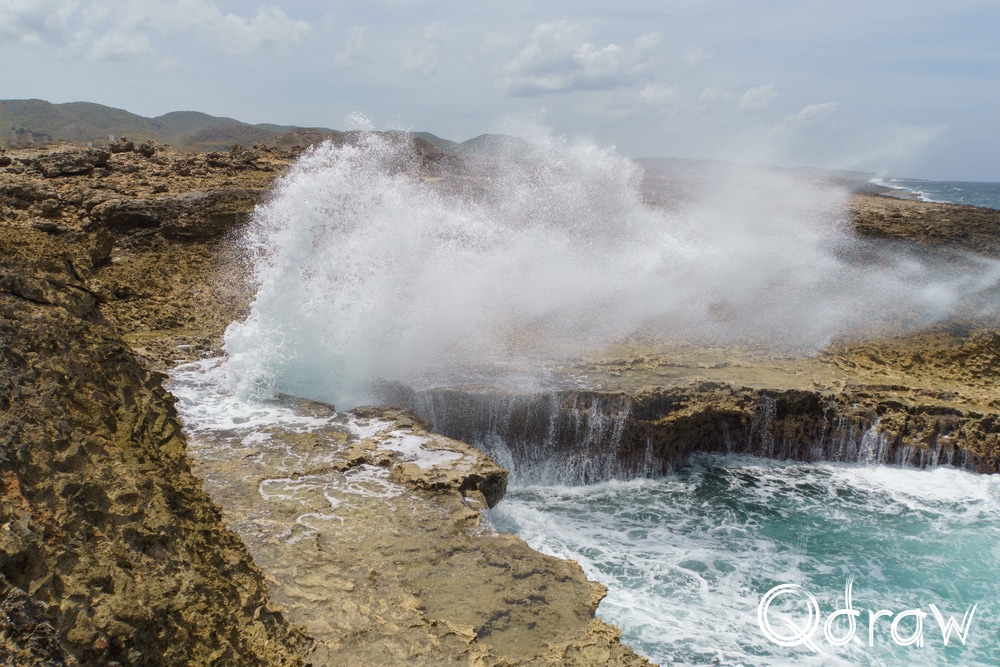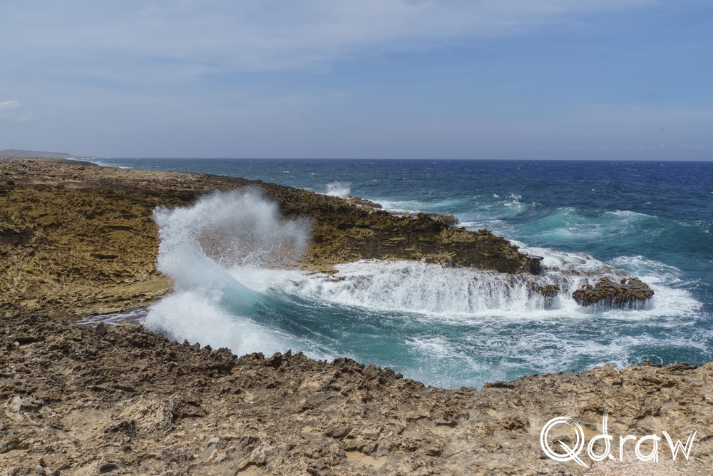 Mijn eerste stop was Boka Pistol en de naam bleek geen overdrijving. Bij elke golf die door de smalle spleet in de rotsen werd geperst, klonk een luide knal, gevolgd door een metershoge waterpluim. Iedereen die stond te kijken, genoot van dit natuurverschijnsel. De zee had hier duidelijk het laatste woord.