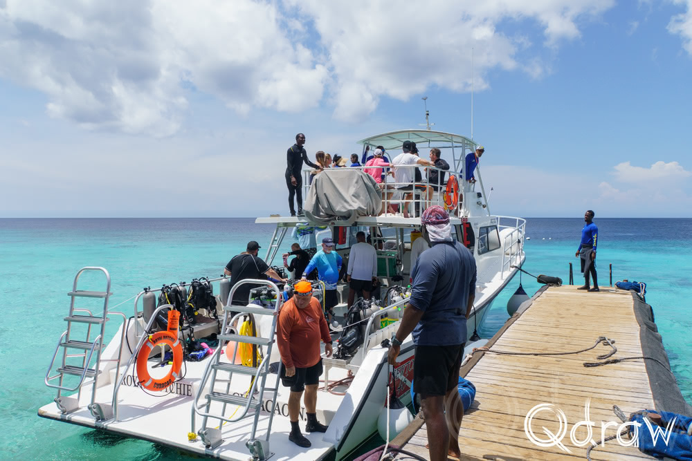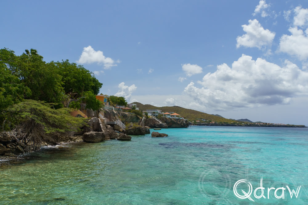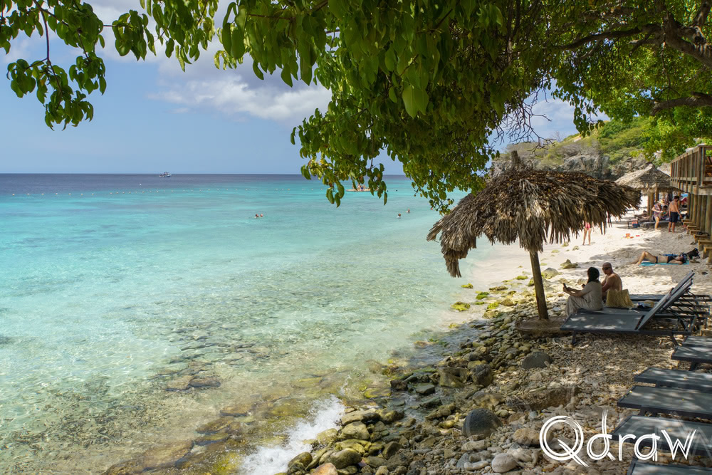Aan de westkant van Curaçao, vlak bij Westpunt, ligt Playa Kalki – een klein strand ingeklemd tussen witte kalksteenkliffen. Het water is er zo helder dat je bijna kunt zien wat er onder het oppervlak leeft, zelfs zonder erin te gaan.