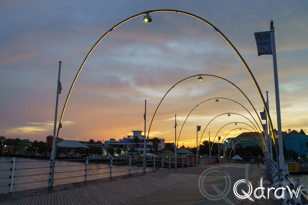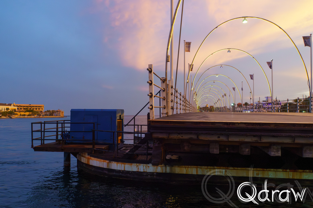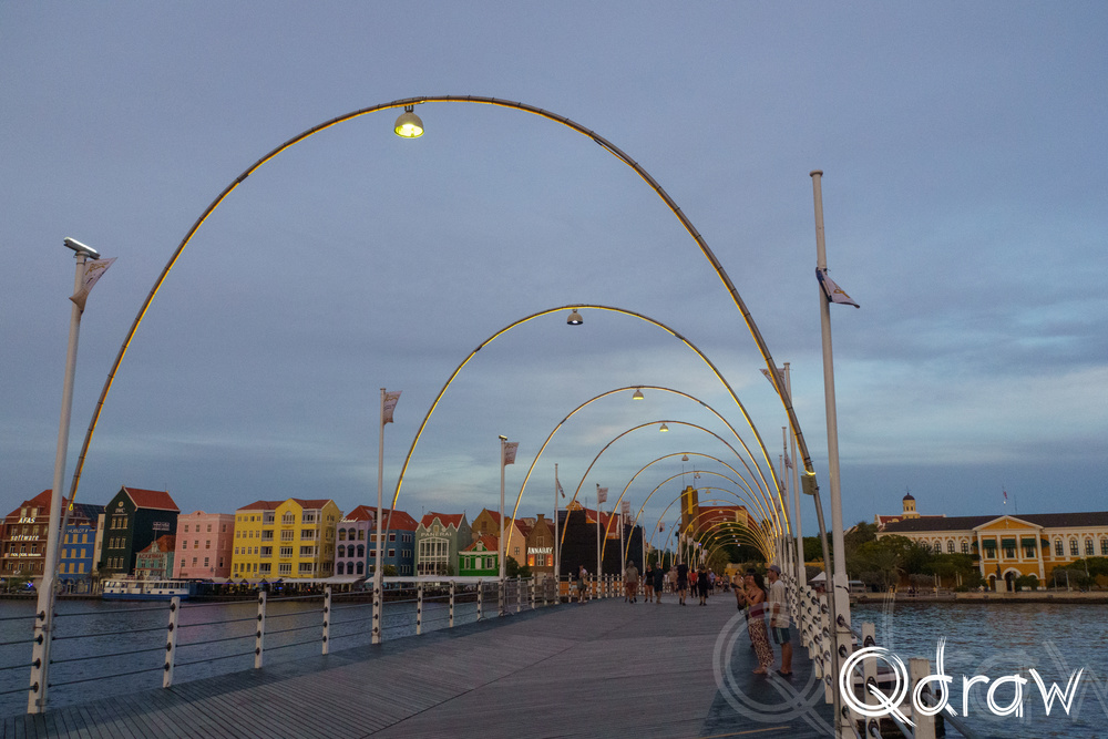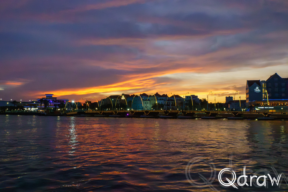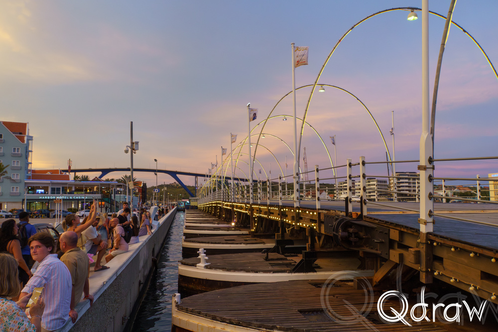 De zon stond laag toen we over de pontjesbrug liep. De lucht kleurde oranje en roze en precies op dat moment klonk het belletje: de brug ging open. Terwijl de drijvende delen langzaam uit elkaar schoven om een schip door te laten, stond iedereen stil. Toeristen met camera’s in de aanslag, locals met een ijsje in de hand – allemaal keken we hoe de zon in het water zakte en de stad in zacht goud lichtte. Het was een klein moment van magie, alsof Willemstad zelf even ademhaalde.