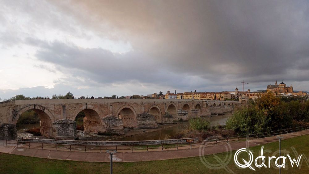 Vlak bij de moskee ligt de Romeinse brug over de rivier de Guadalquivir. De 331 meter lange brug met 16 bogen is ruim 20 eeuwen oud en werd gebouwd door de Romeinen, maar is in de loop van de eeuwen geregeld herbouwd en de huidige structuur stamt vooral uit de middeleeuwen waarbij in 918 de Moren de brug flink hebben uitgebreid. De kasseien uit de 19e eeuw geven de brug Puente Romano echter weer een Romeinse indruk. Hier heb ik genoten van de zonsondergang.