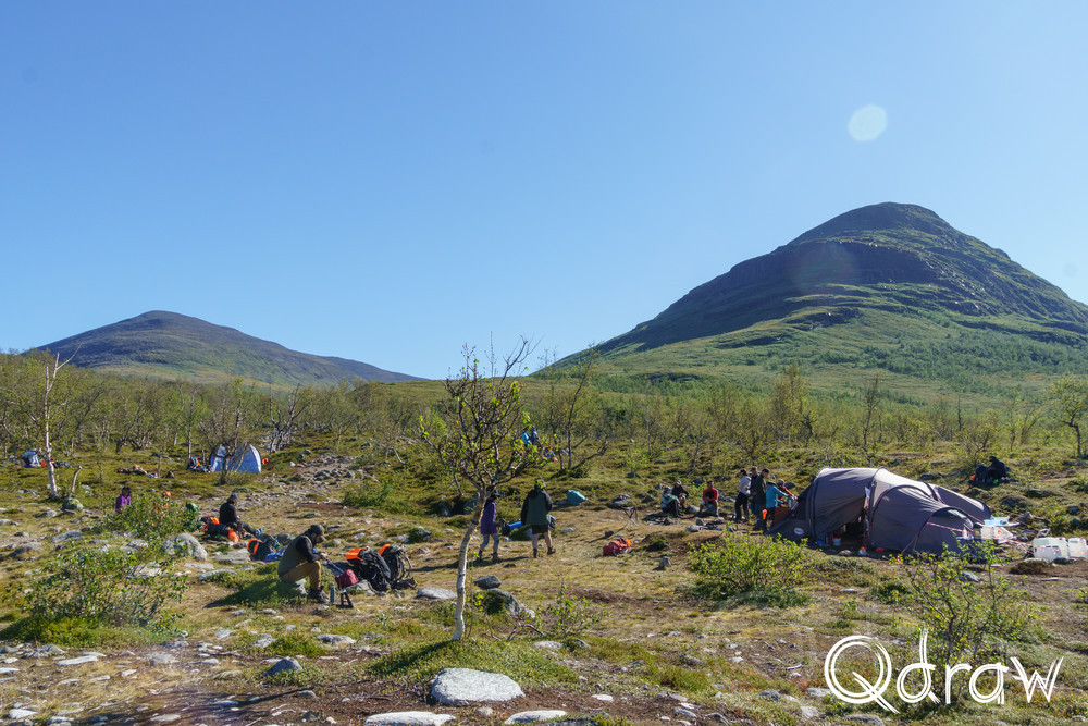 Vlak voor de Siellajohka rivier hadden de mensen van het Fjällräven Classic evenement een kamp opgezet waar ze aan de deelnemers pannenkoeken en koffie uitdeelden. Hier was ook een registratiepunt waar men bij hield hoe ver iedereen is. Alle mensen die meededen aan Fjällräven Classic hadden een plastic oranje label op de rugzak met het logo van het buitensportmerk.