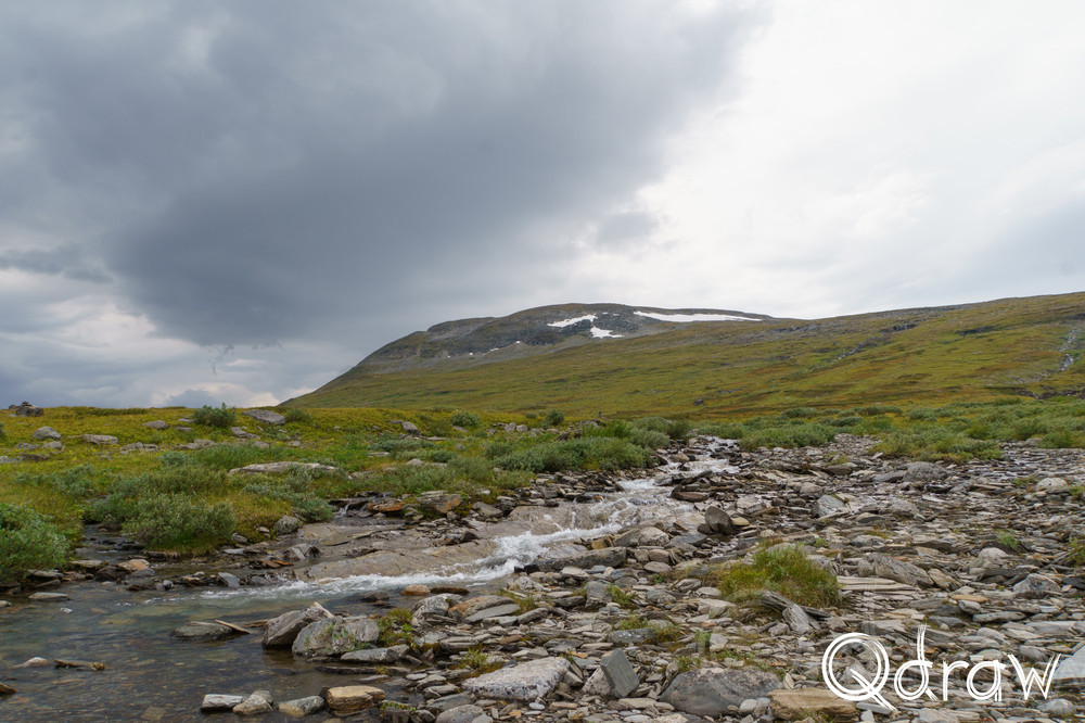 Onderweg kwam ik nog markeringen tegen van een andere route: Nordkalottleden. De Kungsleden loopt een stuk parallel met de Nordkalottleden, dat is een route van 800 kilometer die volledig boven de poolcirkel loopt en begint in Finland, via Zweden en Noorwegen naar het zuiden loopt. Maar ik ga verder met de Kungsleden.