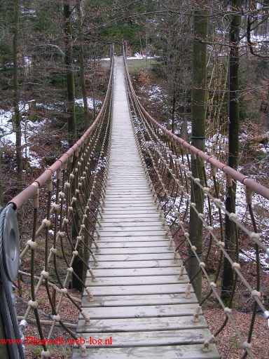 Op een afstand van 0,9 kilometer lag een hangbrug, hij lag ongeveer 8 meter hoog.