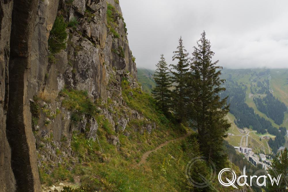 In de Franse Alpen zijn we aan het hiken vanaf het plaatsje Flaine. Deze route gaat over de ‘Le pas de l’écureuil’ een bergkam waarbij je eerst een stuk tegen de rotsen moet klimmen en daarna een prachtig uitzicht hebt. Zo kun je het dorpje Flaine vanaf hier goed zien. Je bent hier boven de bomengrens. Van deze bergkam liepen we door naar het meer ‘Lac de Vernant’. De route liep door de berg (Tête du Pré des Saix) op. Dit stuk is erg mistig. De mist trekt snel weer weg en zo hebben we mooi uitzicht over de bergen.