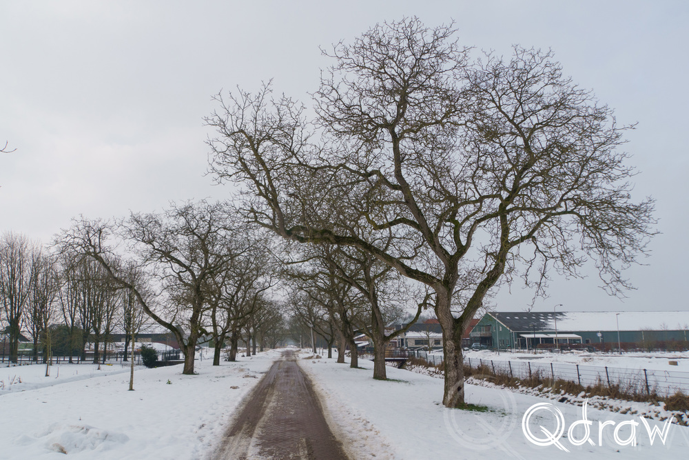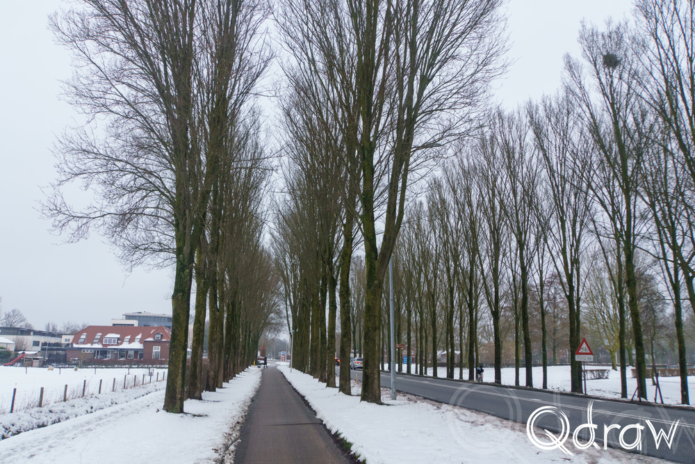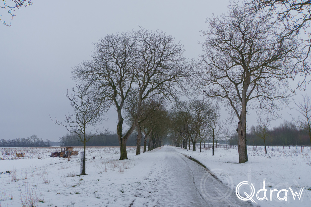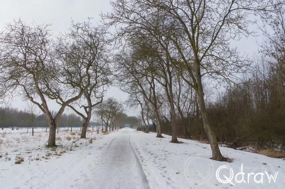 De Notenlaan was een een mooi stuk van deze middagwandeling. De bomen stonden kaal en statig, hun takken licht bestoven met sneeuw. Het winterlicht viel hier gefilterd doorheen, waardoor alles net wat zachter leek.