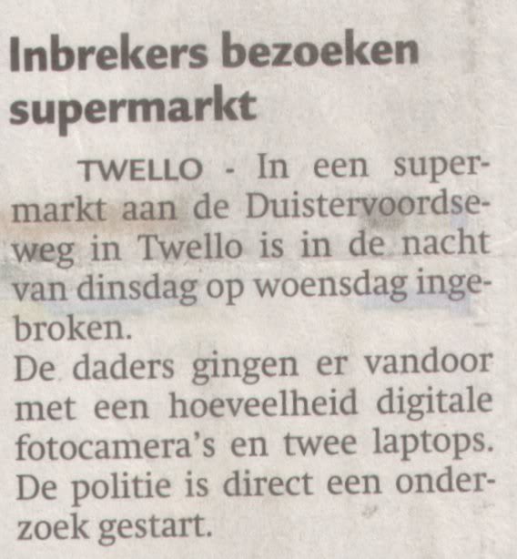 Wist u dat er op de nacht van 8 november op 9 november is in gebroken bij de Aldi in Twello.