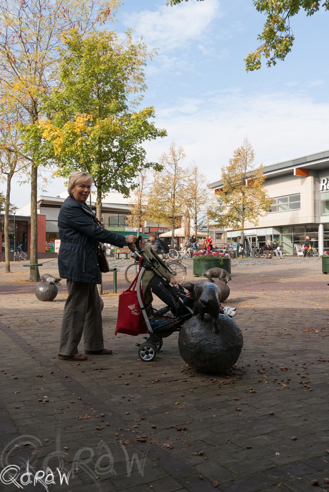 Afgelopen vrijdag heb ik een bezoekje gebracht aan het centrum van Twello. “Hét winkelhart van de stedendriehoek!” aldus de ondernemersvereniging van Twello. Aangezien ik nog geen item gemaakt heb van het centrum van Twello, wel een heel aantal keren over de nieuwbouw geschreven, over de markt en nog heel aantal items over Twello en Omgeving, ben ik naar het centrum gegaan. Te voet ben ik door het centrum gelopen en op het moment dat ik de varkentjes op het Dorpsplein wilde fotograferen viel mij het volgende op: Er was een vrouw met kinderwagen en dat kind ging de varkentjes aaien. Ik vond het zo origineel bedacht dat ik ter beloning van deze creative ingeving de scène op op de foto heb gezet. (foto 12). Later ben ik nog een keer terug gekomen om een aantal opnames te maken, dit maal in het gouden uur. De laatste drie foto’s hebben daarom ook een blauwe kleur. De complete set is te vinden op fotodeel website Flickr