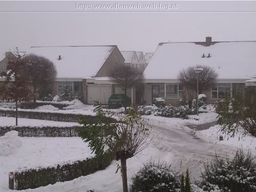 Het sneeuwt nu weer met middelgrote vlokjes.