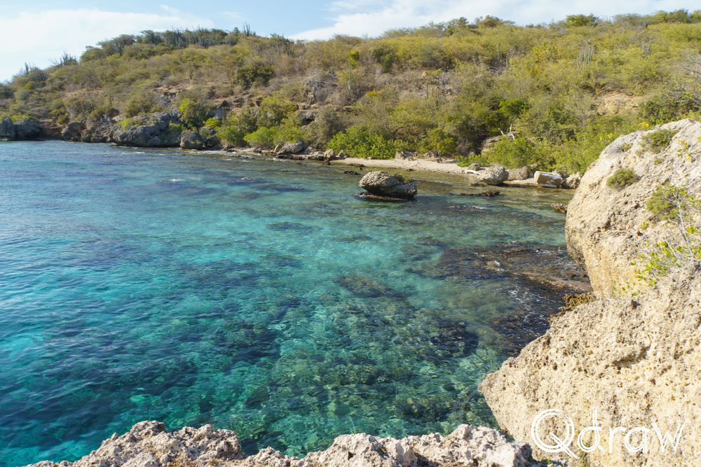 Als je me vraagt wat het gezelligste strand van Curaçao is, hoef ik niet lang na te denken. Dit strand was zeker een favoriet van ons. De baai heeft de laatste jaren een flinke opknapbeurt gehad. Er is nu een grote parkeerplaats, een nette rotonde en zelfs wat extra schaduw dankzij nieuwe palapa’s en bomen. Het voelt meteen een stuk aangenamer en uitnodigender.