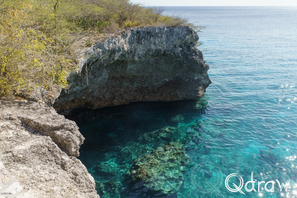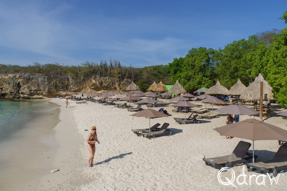 Vanaf de klif boven Grote Knip heb je misschien wel het bekendste uitzicht van Curaçao: een helderblauwe baai met steile rotsen aan weerszijden. Beneden is het echter een ander verhaal. Het strand is vol, met rijen strandstoelen en kraampjes. De schoonheid blijft, maar het gevoel van rust is ver te zoeken.